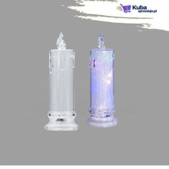 ✔️ Dioda LED✔️ Imitacja kapiącego wosku✔️ Wykonanie: Materiału akrylowego✔️ Wysokość: 19,5 cm✔️ Średnica:  6,7 cm✔️ Zasilanie: 3x bateria LR1130 (W ZESTAWIE)✔️ Kolor płomienia: ciepły✔️ Ilość szt: 1 szt