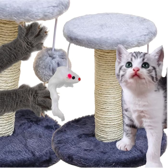 🐈 Drapak dla Kota – Wieża, Słupek, Legowisko i Zabawka w Jednym! 😻 – [Stalowo/Szary, Szybka Dostawa!]