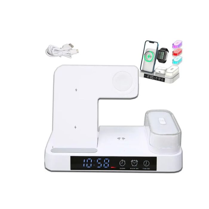 Ładowarka Indukcyjna Stacja Indukcja Bezprzewodowa 15W lampka Nocna 4w1 QI