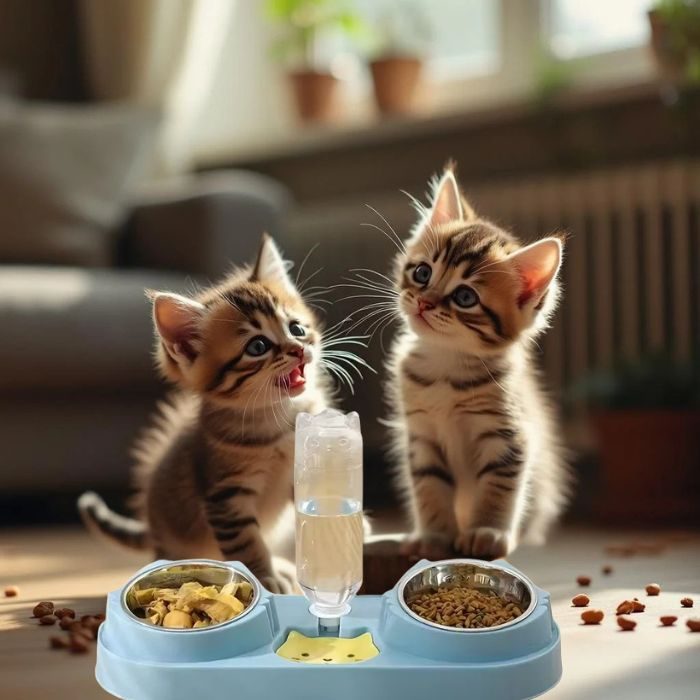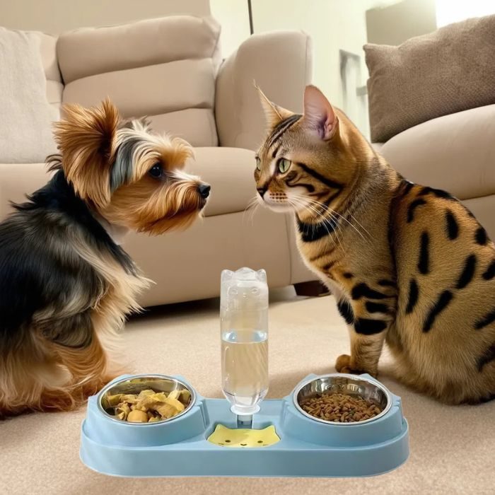 ➡️ Główne zalety podwójnej miski z dozownikiem na wodę: